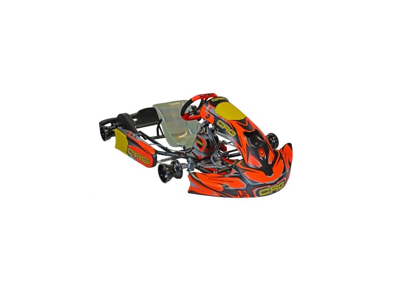 The Black Mirror chassis is CRG’s most important innovation in the youth sector. It has international homologation and the frame is made of 28mm tubes, the front geometries have 2 bends between the seat and the stub axle’s “C”. This design differs from the Hero model that has one bend only in this part. It is equipped with the new Ven 12 brake system, with self-ventilated floating disc of 162mm diameter. On this chassis is possible to adjust the heights, camber caster and it is provided with a new weight and design improved bodywork.
